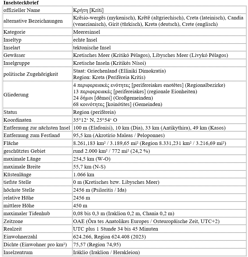 [[Datei:Kreta - Inselsteckbrief.png|rechts]] | [[Datei:Kreta .- Inselsteckbrief 2024.png|rechts]] | ||