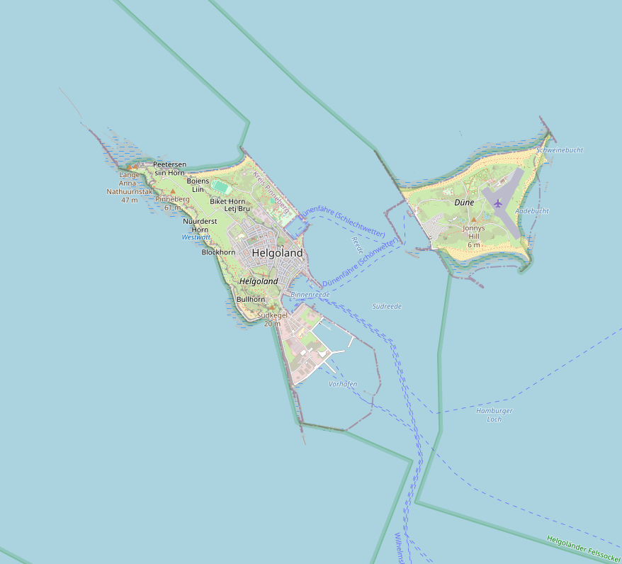 - Helgoland, openstreetmap = https://www.openstreetmap.org/#map=14/54.18052/7.87814