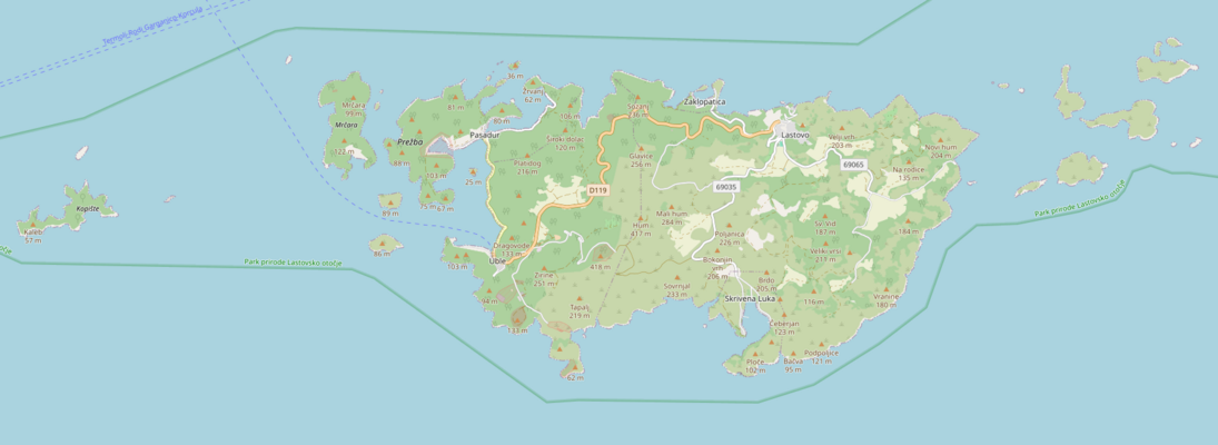 - Lastovo, openstreetmap = https://www.openstreetmap.org/#map=13/42.75054/16.84753