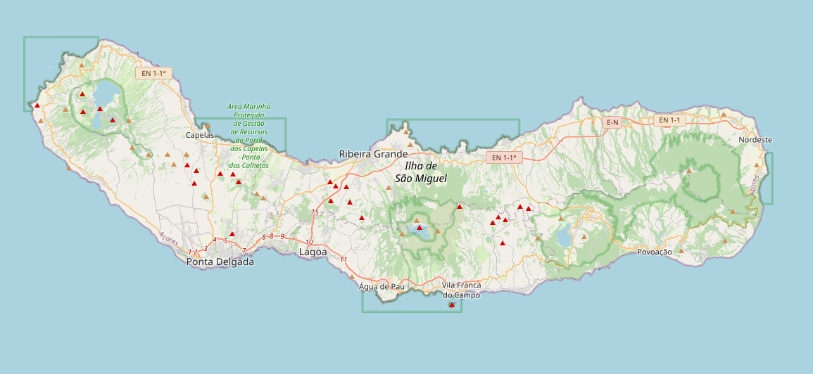 • nördlichster Punkt:  37°54‘38“ n.B. (Ponta de Bretanha)
